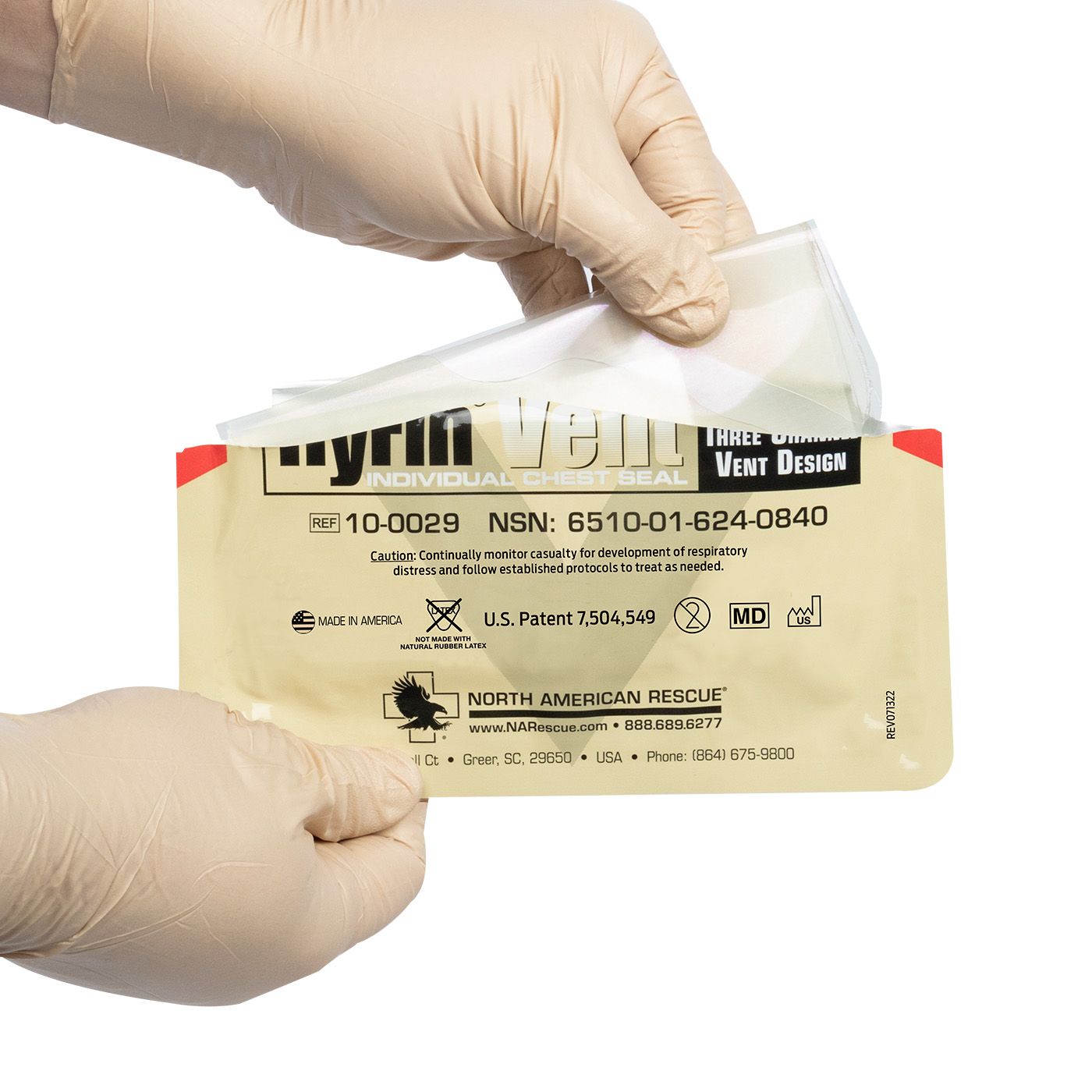 NAR packages each chest seal using its signature Red Tip Technology® red tear notches to ensure high quality performance. The HyFin® Vent Chest Seal meets or exceeds the current EMS Standard of Care and TCCC & TECC Guidelines for treatment of penetrating injuries to the chest.